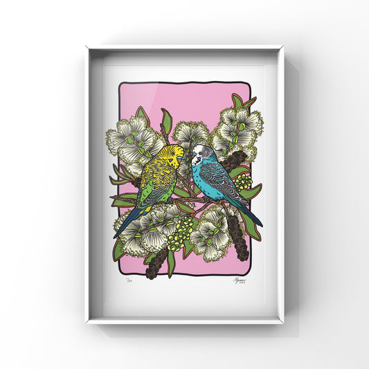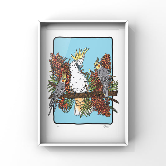 Sulphur Crested Cockatoo & Cockatiels Art Print
